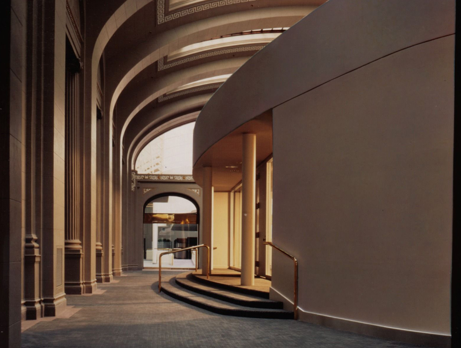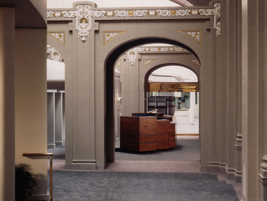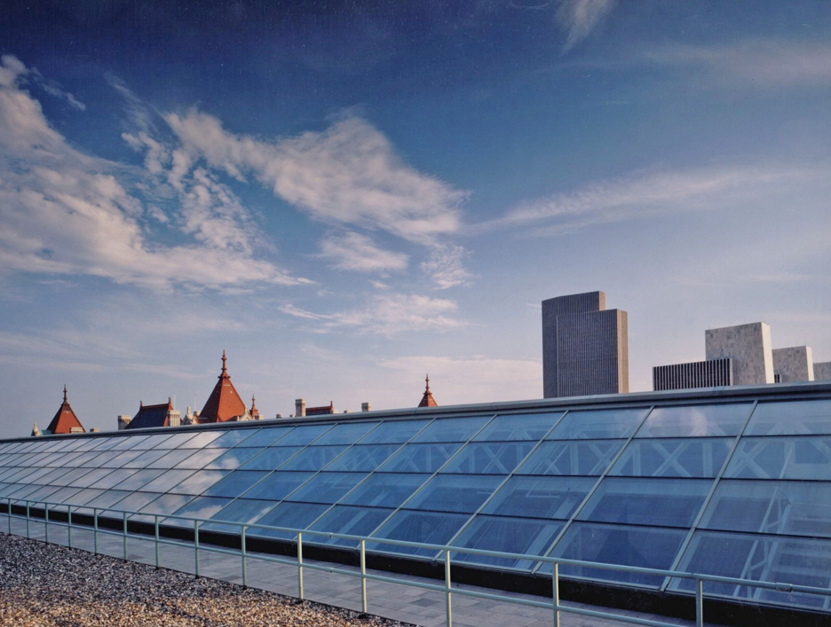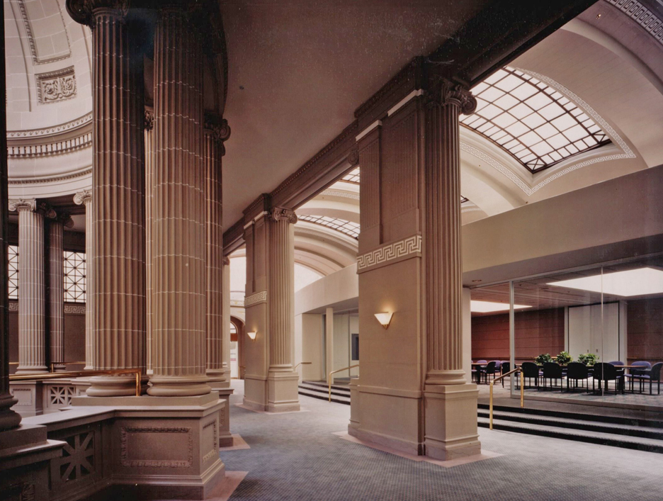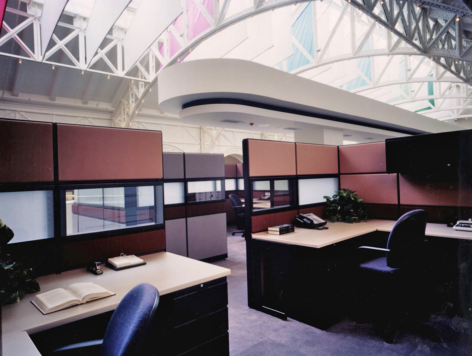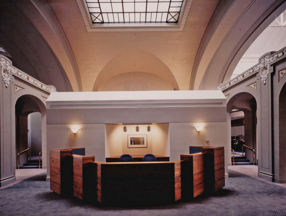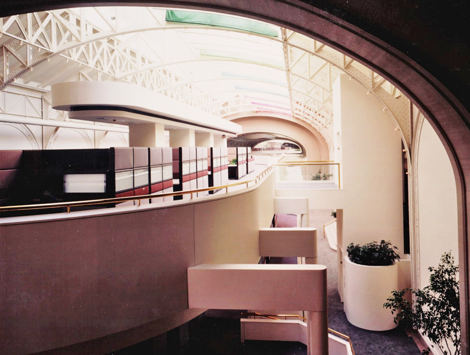The fifth floor of the State Education building was originally designed to house dinosaur and Indian exhibits for the New York State Museum. The 70,000 square-foot, 40 foot high space, which featured high arched openings and gabled sky-lights was renovated to provide modern office facilities for the state.