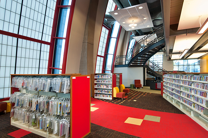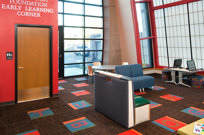 The library originally build in 1969 by Sweet Associates Inc. received a 6,700 square foot expansion to house the new children’s area.